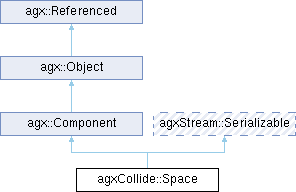 Inheritance diagram for agxCollide::Space:Public Types | |
