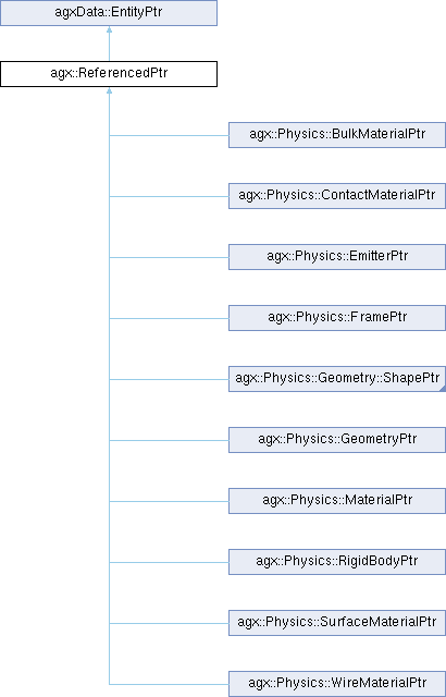 Inheritance diagram for agx::ReferencedPtr:Public Types | |